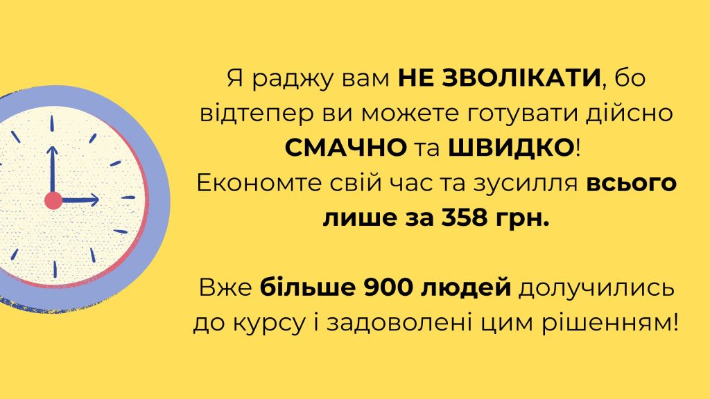 - Я створила цей курс для жінок, які й так роблять дуже багато: працюють, виховують дітей, мають сім’ю, а ще можливо й господарство. Я щиро вважаю, що жінки мають навчитись економити час на кухні, щоб приділяти хоч трохи часу собі та своїм інтересам. Саме тому всі мої курси присвячені приготування швидкої та смачної їжі.